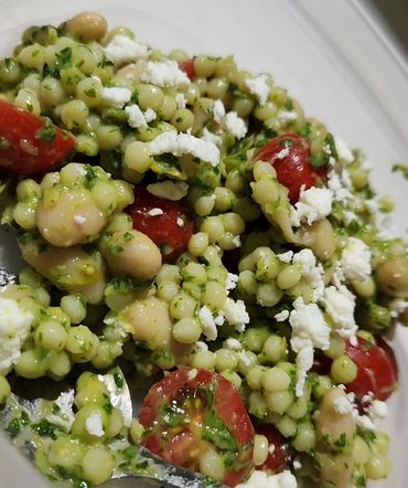 Chickpeas, roasted red bell pepper, sriracha, maple syrup, lemon juice, white vinegar. Served with grilled pita